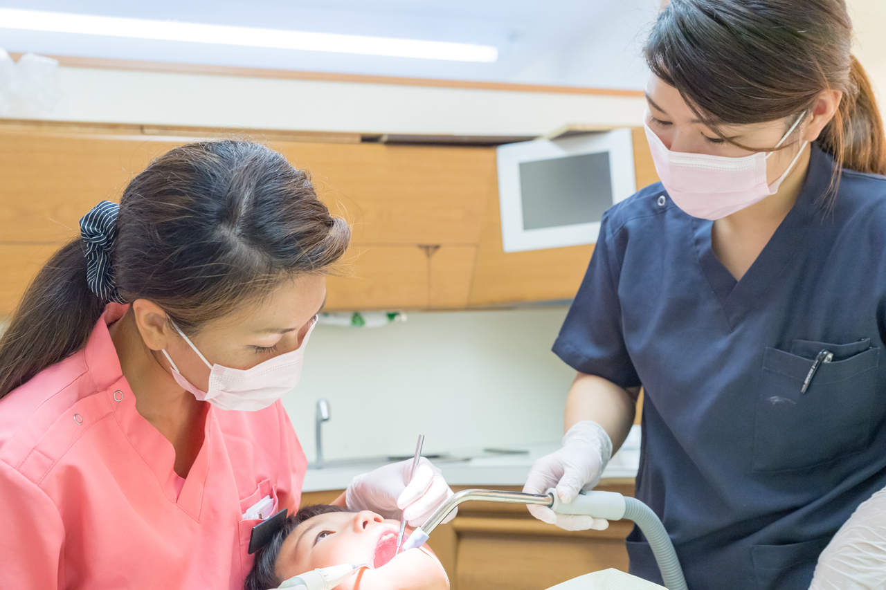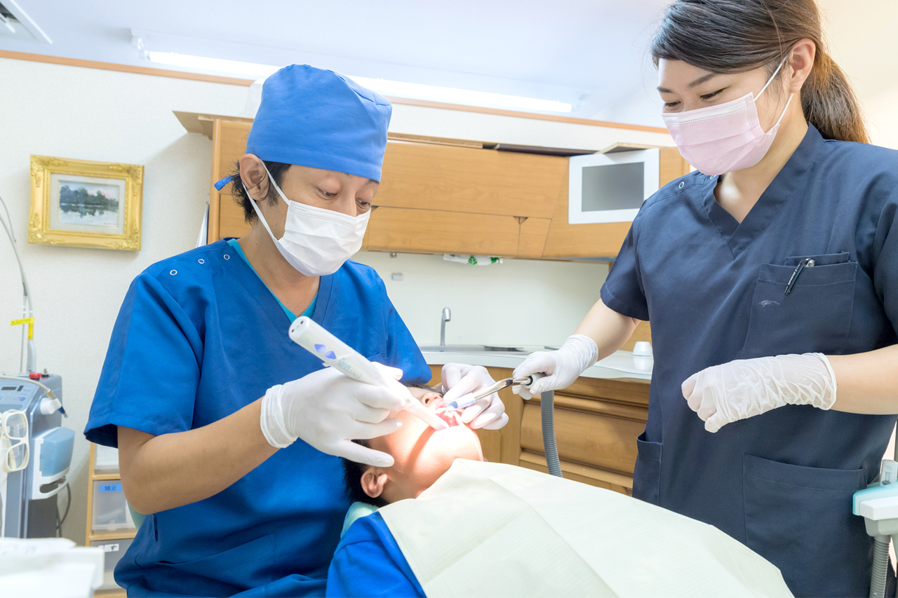 歯科助手の方には、歯科医師とペアを組んでの「4ハンドシステム」での診療を行っていただきます。